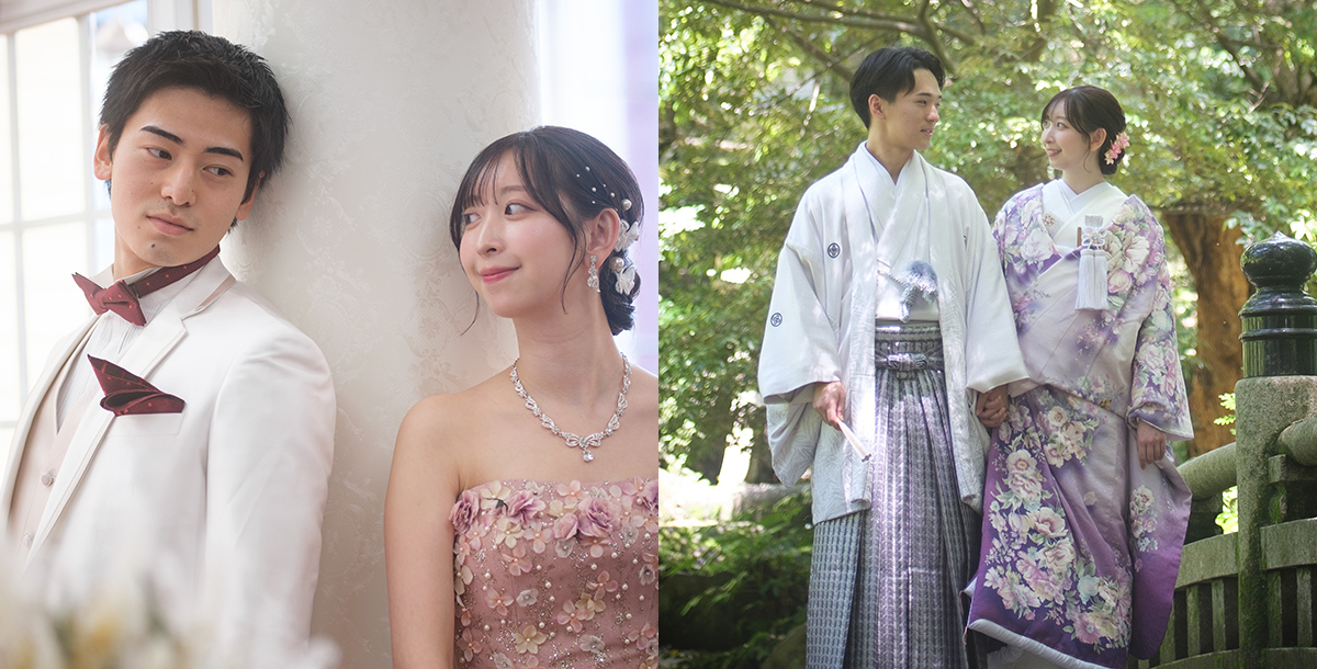 自由で手軽に撮影できる専用スタジオと、非日常の異国のような特別スタジオの2つの空間をご用意しております。豊富な衣装の中からお選びいただき、フリー撮影をいたします。せっかくの記念となる撮影ですので、撮りたいイメージやご要望について、ぜひご相談ください。